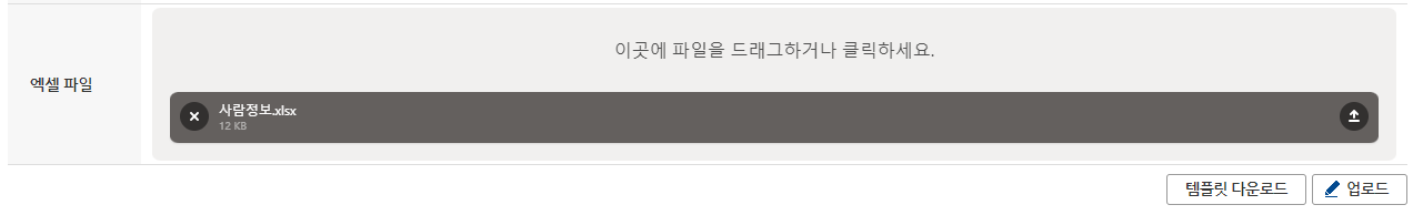 실제 엑셀업로드 화면