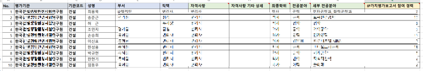 // IP가치평가보고서 참여 경력